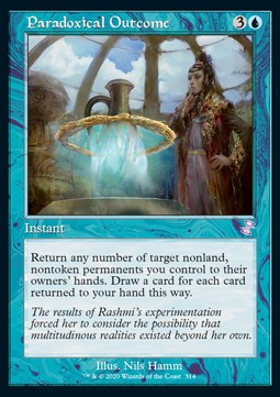 Paradoxical Outcome tuvo su momento de gloria durante algunas semanas tanto en modern como pioneer, los mazos giraban en torno a artefactos de bajo coste y cartas como Saheeli, Sublime Artificer, Urza, Lord High Artificer o Sai, Master Thopterist.