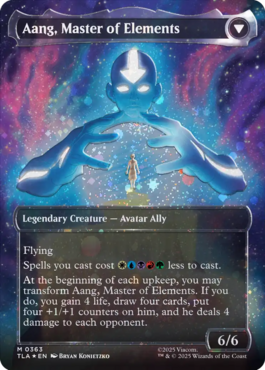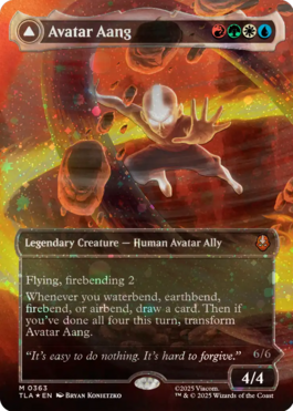 Avatar Aang al poder ser un comandante y poder jugar cualquier carta sin importar el color, será un comandante que desplace a los anteriores que tenemos con la posibilidad de poder jugar los cinco colores.