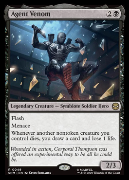 Agent Venom en esta baraja encaja a la perfección, aunque tiene un coste elevado para el mazo, sus habilidades son bastante buenas para la estrategia.