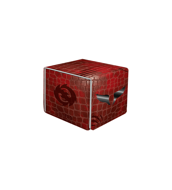 Cuenta con un exterior texturizado de escamas de dragón rojo con papel de aluminio de manchas negras y obras de arte de Neriv, Heart of the Storm (Variante de arte dracónico) de Michael Walsh