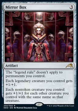 Seguimos con cartas para nuestro héroe favorito, Mirror Box encaja a la perfección en la baraja, dando la posibilidad de poder copiar a Deadpool con todas las cartas que pueden poner copias de criatura además de potenciarlas.